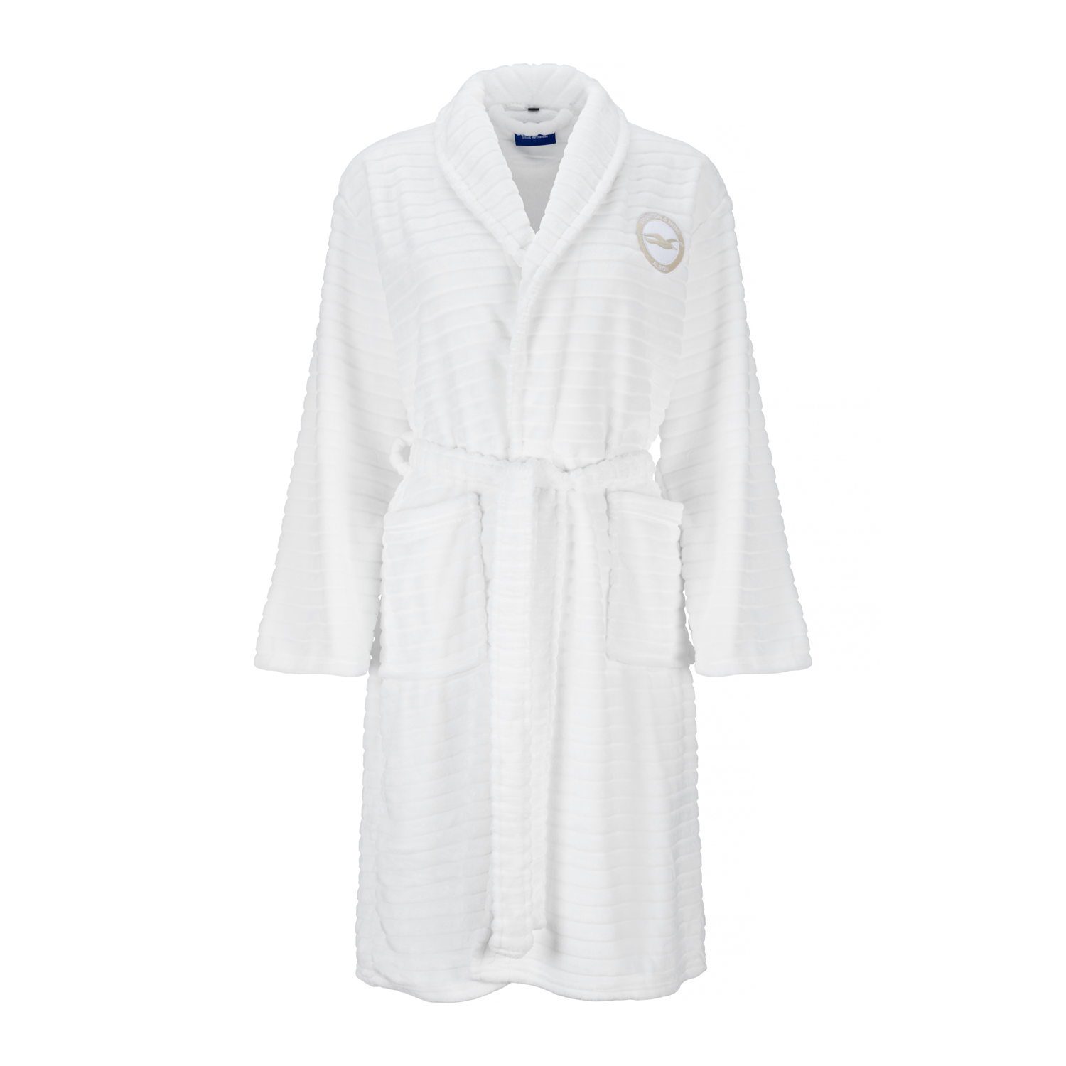 Stay snug and stylish with the BHAFC Women's Abbie Dressing Gown. Crafted in a soft white with a plush finish, this cosy gown features the Brighton & Hove Albion crest embroidered on the chest for a subtle touch of club pride. With a flattering fit, tie waist and deep pockets, it’s perfect for relaxing at home, post-shower comfort or matchday mornings. A warm and welcoming essential for every Albion fan.