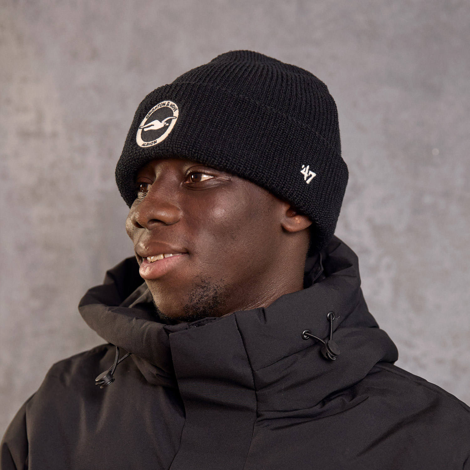 '47 Black Heavy Wool Blend Cuff Knit, featuring flat embroidery and crafted from thick premium wool.