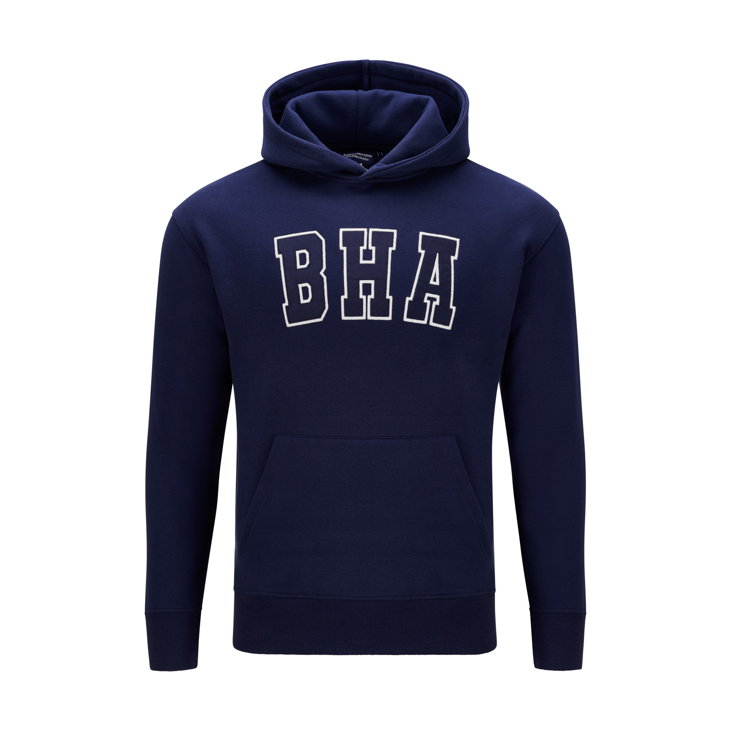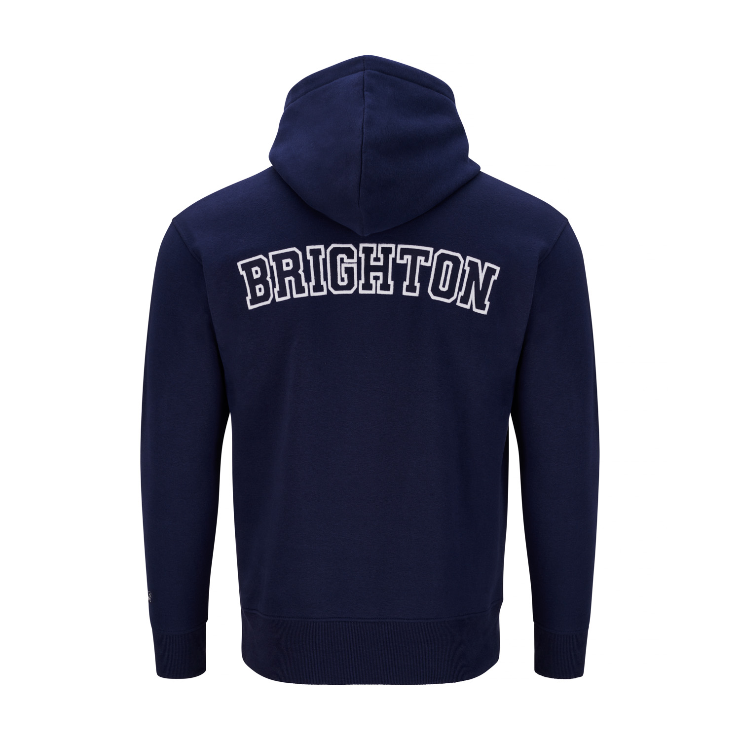 Stay comfortable at home or on the move in the BHAFC Navy Adatone Hoodie. Created in a soft navy cotton blend, you can find a different embroidered Brighton & Hove Albion spellout on the front and back. It's completed with a large kangaroo pocket and an embroidered seagull on the sleeve.