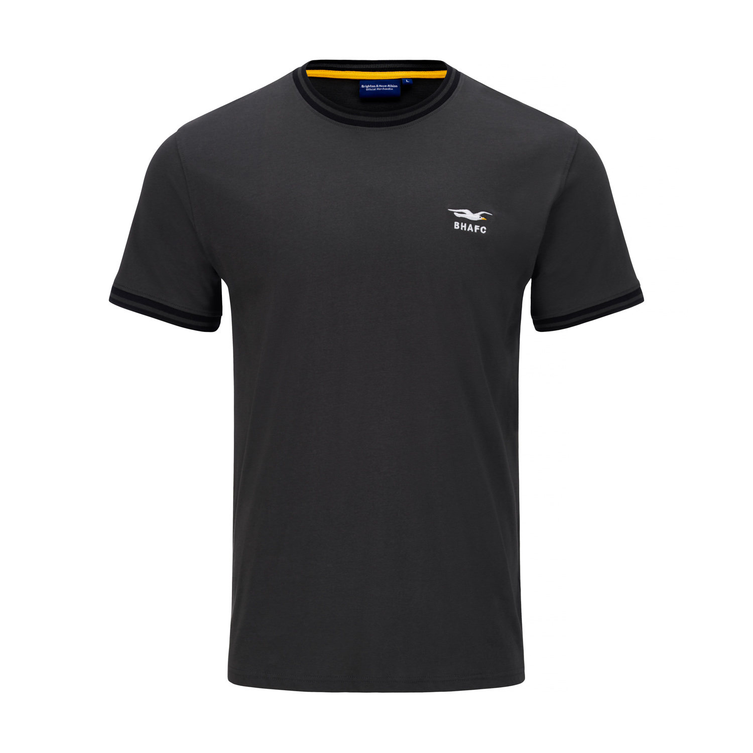The BHAFC Charcoal Mini Graphic Tee offers a minimalist take on clubwear. Made from soft charcoal cotton, it features a small white graphic on the left chest combining the letters BHAFC with a seagull emblem. A regular fit and clean finish makes it a versatile everyday option.