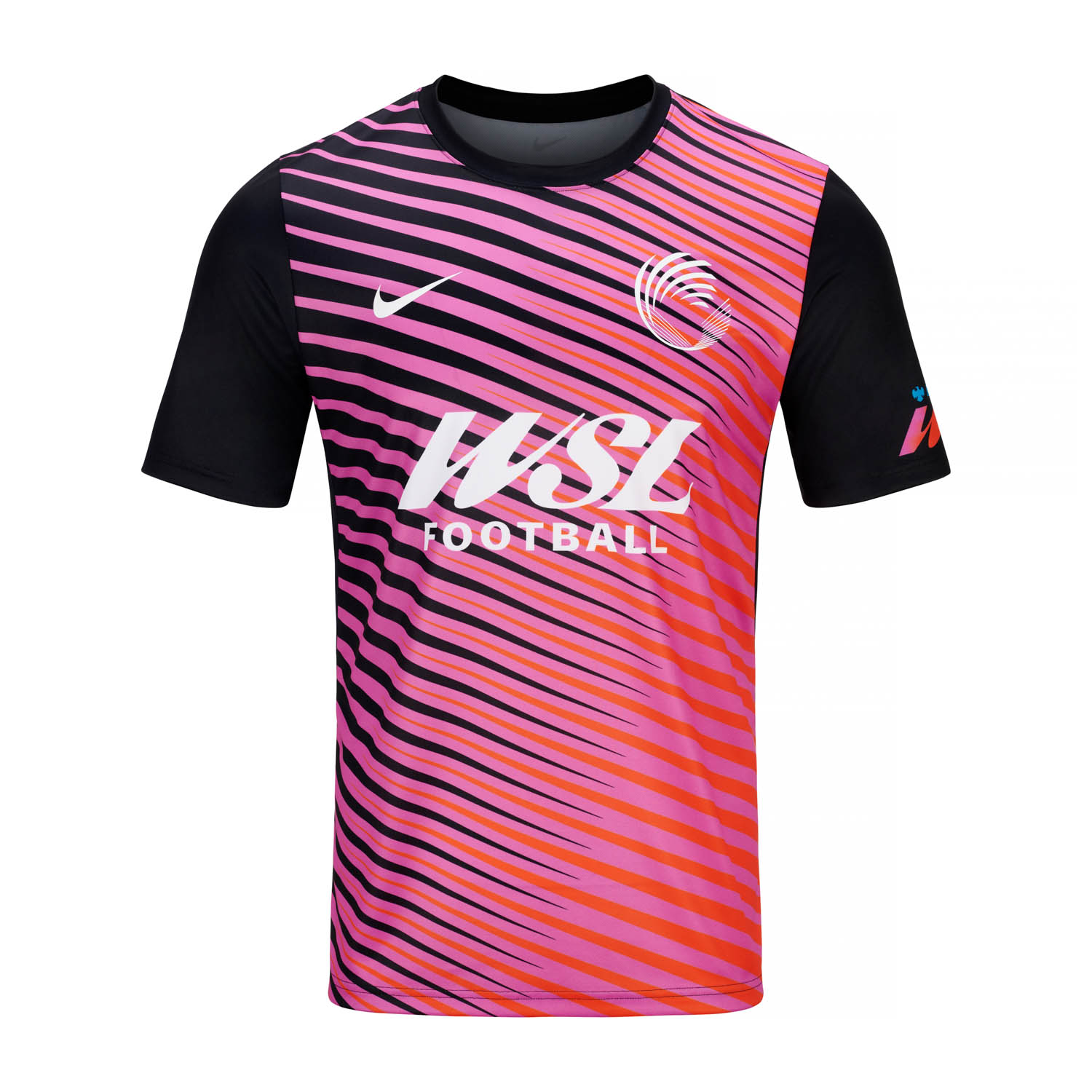 Engineered for movement and designed to stand out, the WSL x Nike Men’s Performance Shirt features a dynamic gradient graphic across the front in pink, contrasted by black sleeves. Finished with the Nike Swoosh, WSL Football branding, and sleeve detailing, it’s a lightweight, breathable option for training or casual wear.